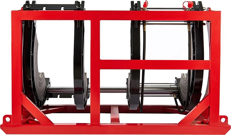- Центраторо с гидравлическим приводом и 4-мя прочными широкими зажимами, один из которых легко может быть удален для облегчения сварки полимерных фитингов с трубами (тройники, крестовины, отводы), имеет большой запас прочности за счет качественного сплава и ребер жесткости, что позволяет сваривать полимерные трубы с любым показателем SDR