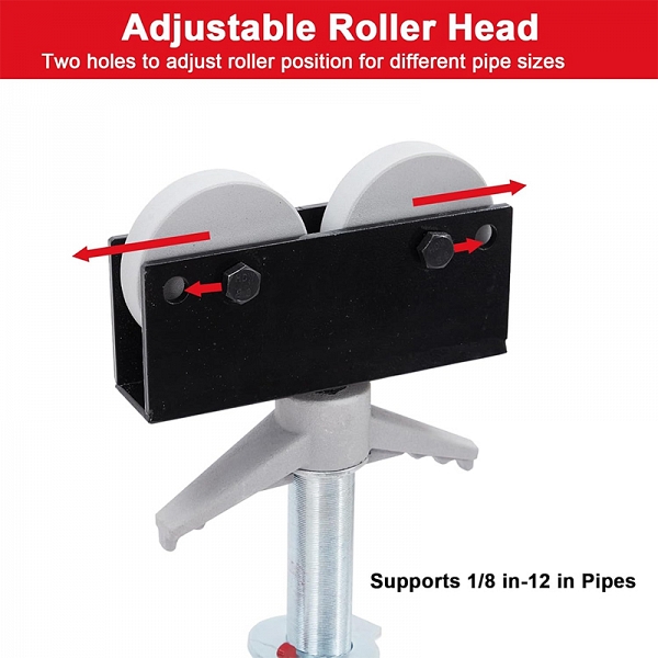 - Регулируема роликовая голова подходит для труб разных размеров: 2 отверстия позволяют регулировать положение роликов для труб разных Ø 3 – 300 мм (1/8" – 12"), обеспечивает легкое перемещение труб